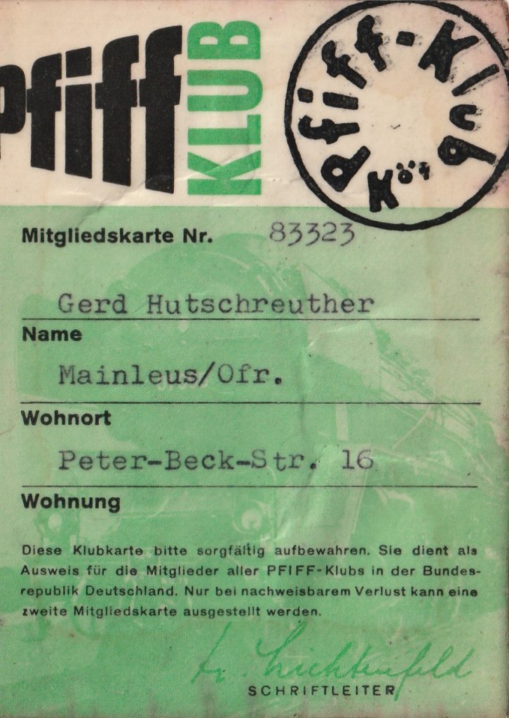 1957 erschien erstmals die Eisenbahn-Zeitschrift “Pfiff”. Die Zeitschrift wendete sich an eisenbahnbegeisterte Jugendliche, mit dem primären Ziel, diese für einen Beruf bei der Bahn zu begeistern. Sie wurde motiviert, sich in einem Eisenbahnclub zu engagieren. Diese Eisenbahnclubs wurden “Pfiff-Klub” genannt. Sie wurden von der DB gefördert mit dem “Hobby-Berater”, einer “Klub-Fibel” und den “Pfiff-Klub” Ausweisen. Mit diesen Ausweisen sollte Jugendliche der Einlass in Bahnbetriebswerke und weiteren Einrichtungen der DB gewährt werden. Der Verlag unterstützte die Bahnbegeisterung dadurch, dass es regelmäßig Verlosungen gab, um das Fotografieren und Berichte schreiben zu belohnen und zu fördern.